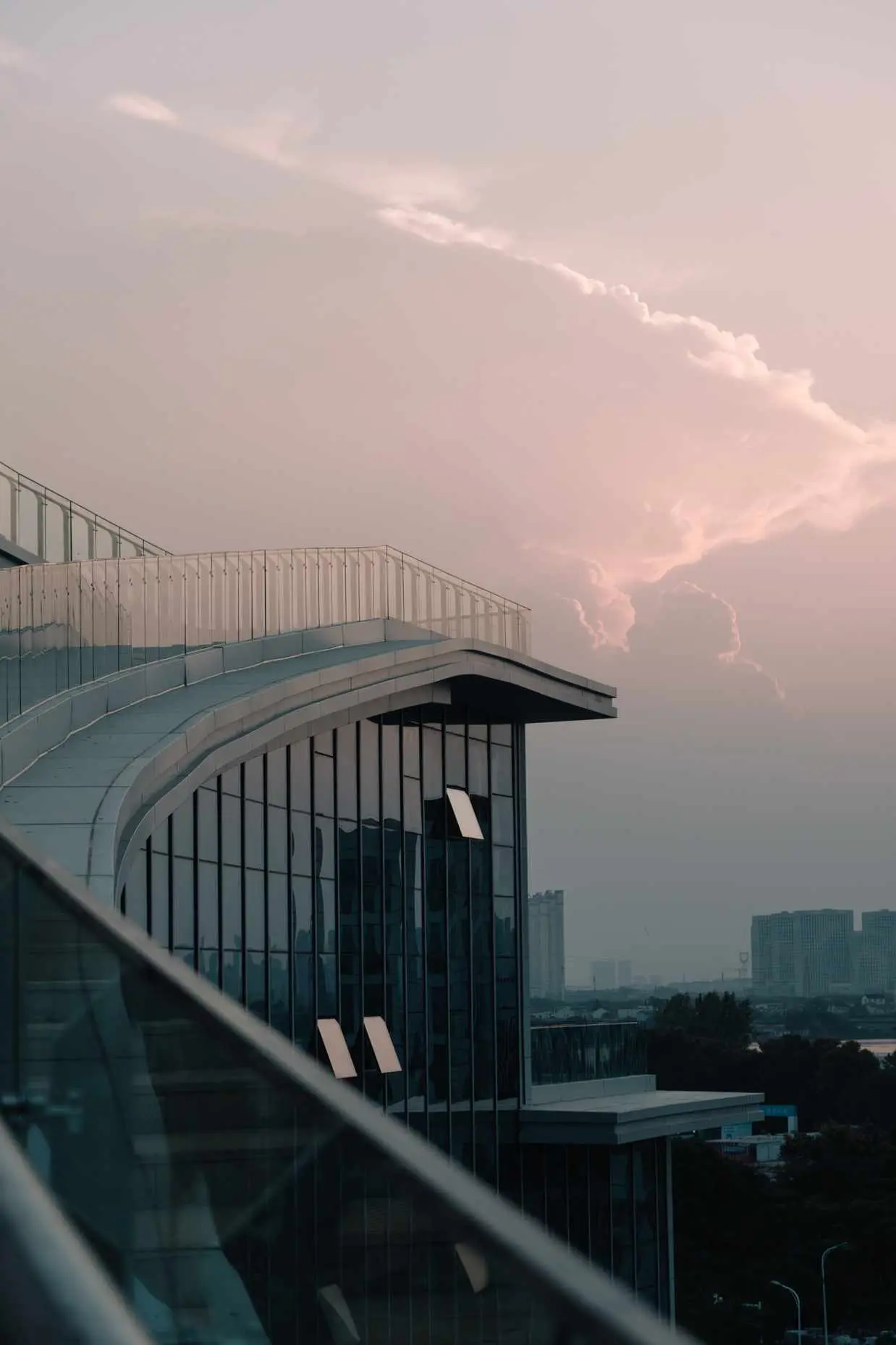 流线型设计 玻璃幕墙 现代建筑风格 结构复杂